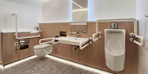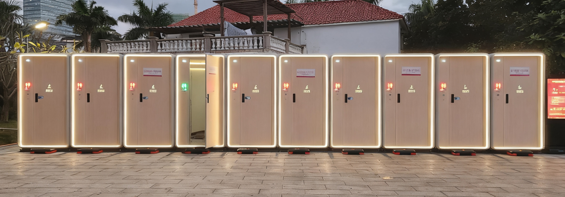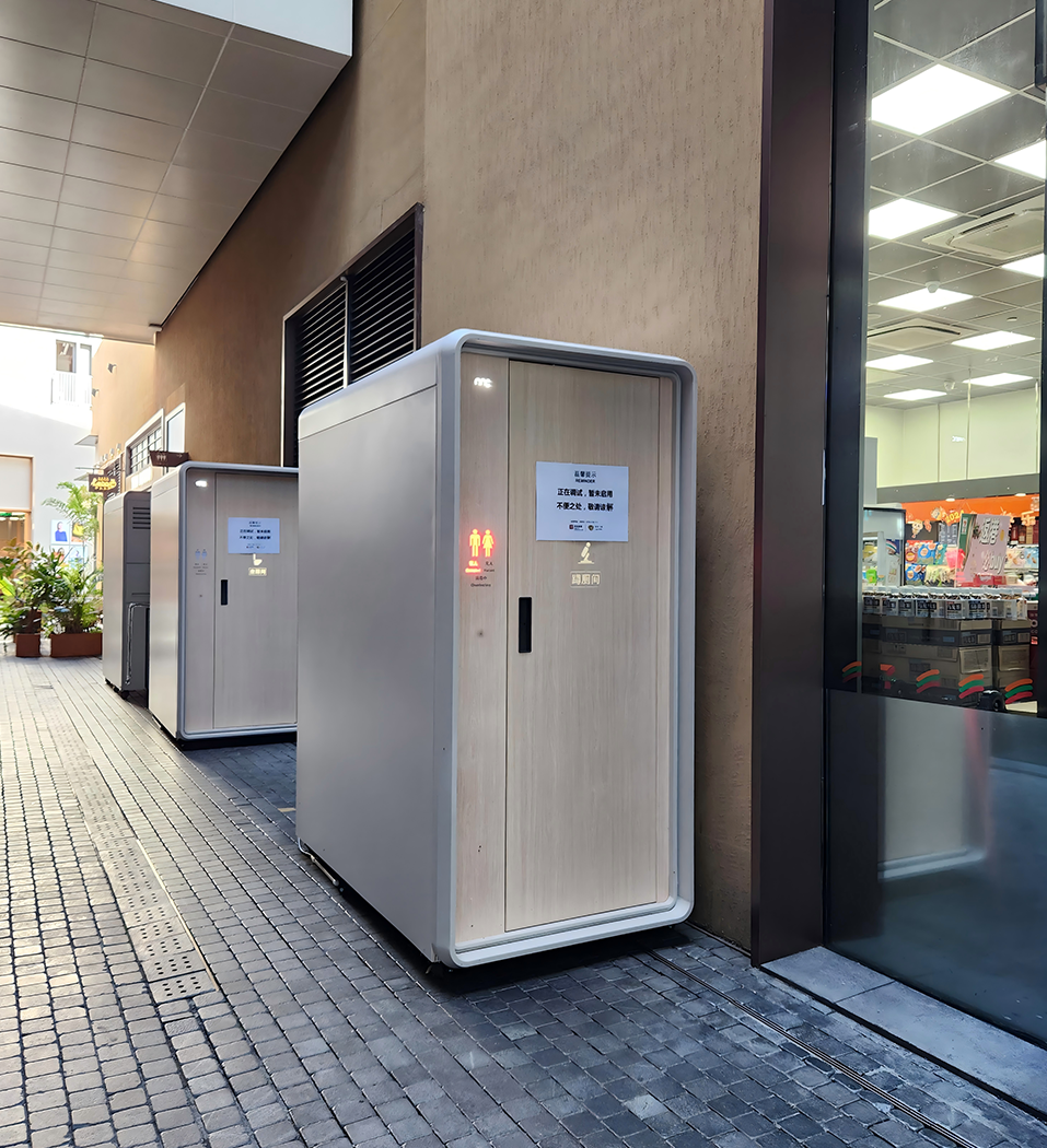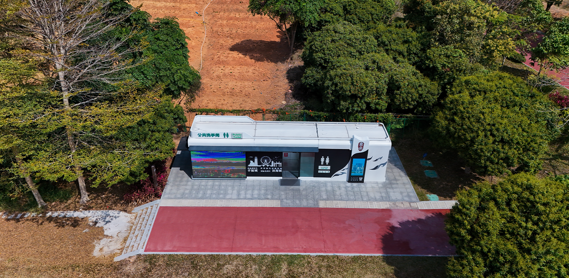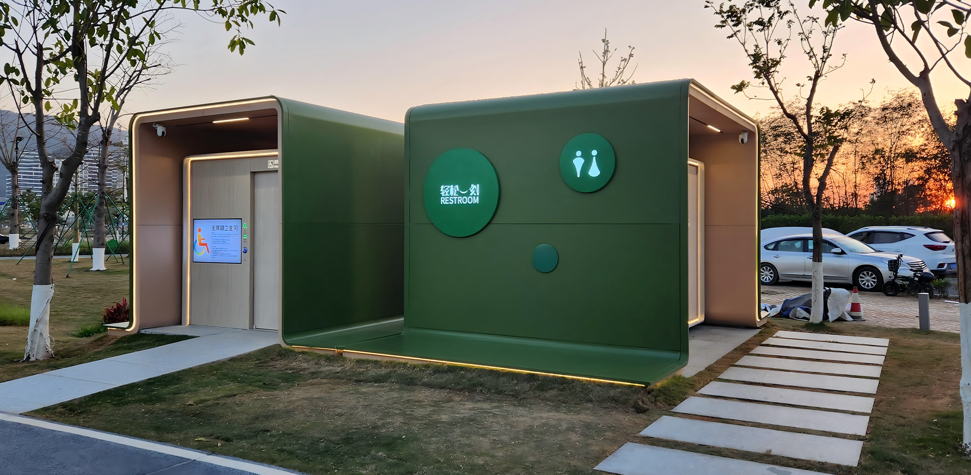 Smartly designed restroom systems seamlessly integrated into commercial complexes, parks, and transit hubs.