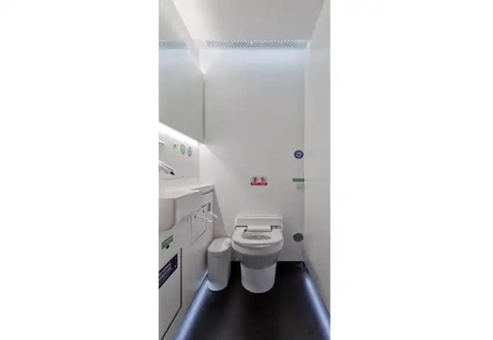 •Touchless, well-lit interior: Intelligent toilet, ceramic sink, sensor-based taps and soap, and soft, glare-free lighting. Sensor taps reduce hand-wash water use by 50 - 70% and cut consumable waste by 30 - 50%.