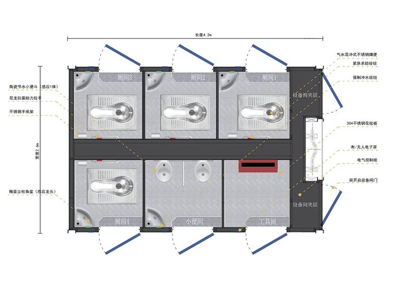 Modular portable public restrooms are an essential component of smart city infrastructure, offering advantages such as rapid deployment, flexible relocation, intelligent management, and eco-friendly operation. They are ideal for parks, transportation hubs, tourist sites, construction areas, and temporary events—effectively addressing the long construction cycles and high maintenance costs of traditional facilities. Integrated with IoT systems, they support real-time monitoring, remote control, and smart maintenance, significantly improving public service efficiency. Built with sustainable materials and equipped with water-saving systems and renewable energy options, they contribute to low-carbon urban development. Their functions can be expanded to include nursing rooms, accessible facilities, and emergency services, making them a key platform for smarter, more people-oriented city services.