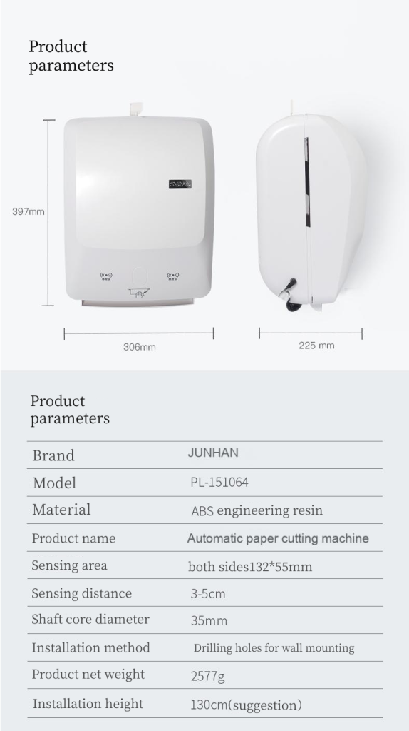 - Designed for hygiene and convenience, it automatically senses paper length and cuts precisely, ensuring clean edges and consistent performance.