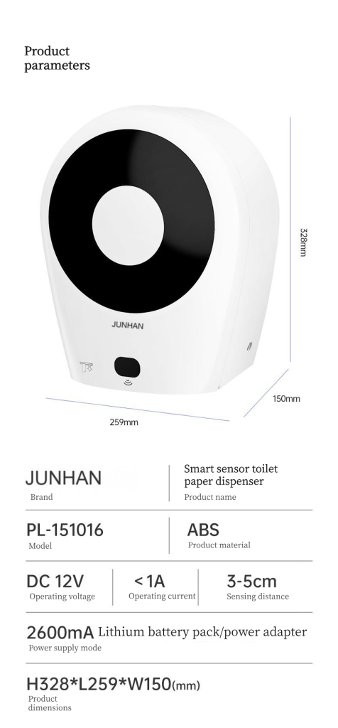 - A smart toilet paper dispenser with infrared induction technology for touch-free operation.