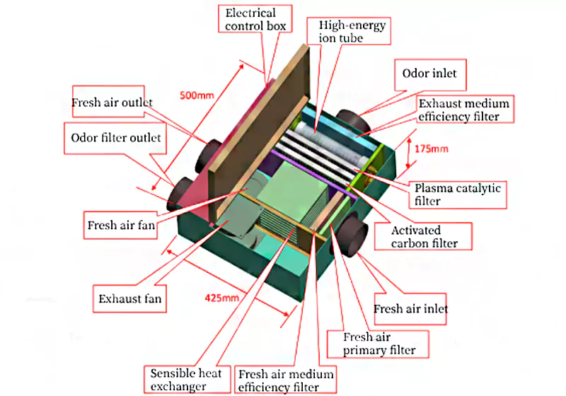 - With advanced filtration technology, including a medium-efficiency filter, high-energy ion purification tube, and plasma catalytic net, it effectively removes ammonia, other odors, and bacteria.