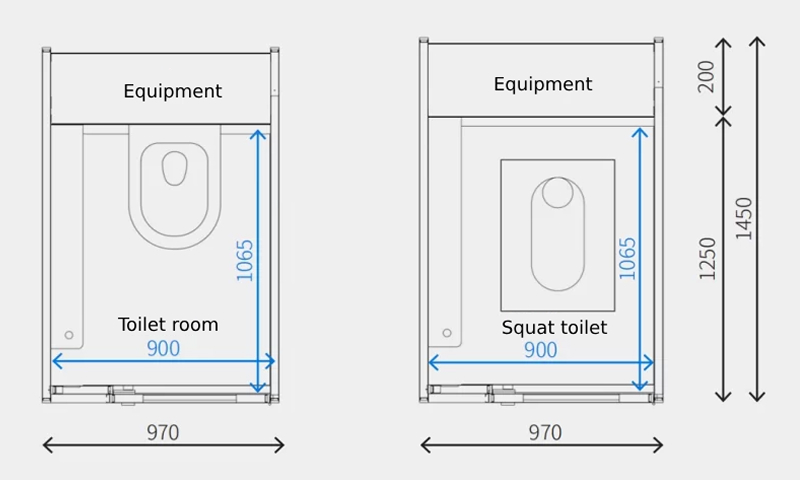 Indoor Dimensions(sitdown toilet) | 1065mm L x 900mm W x 2150mm H |